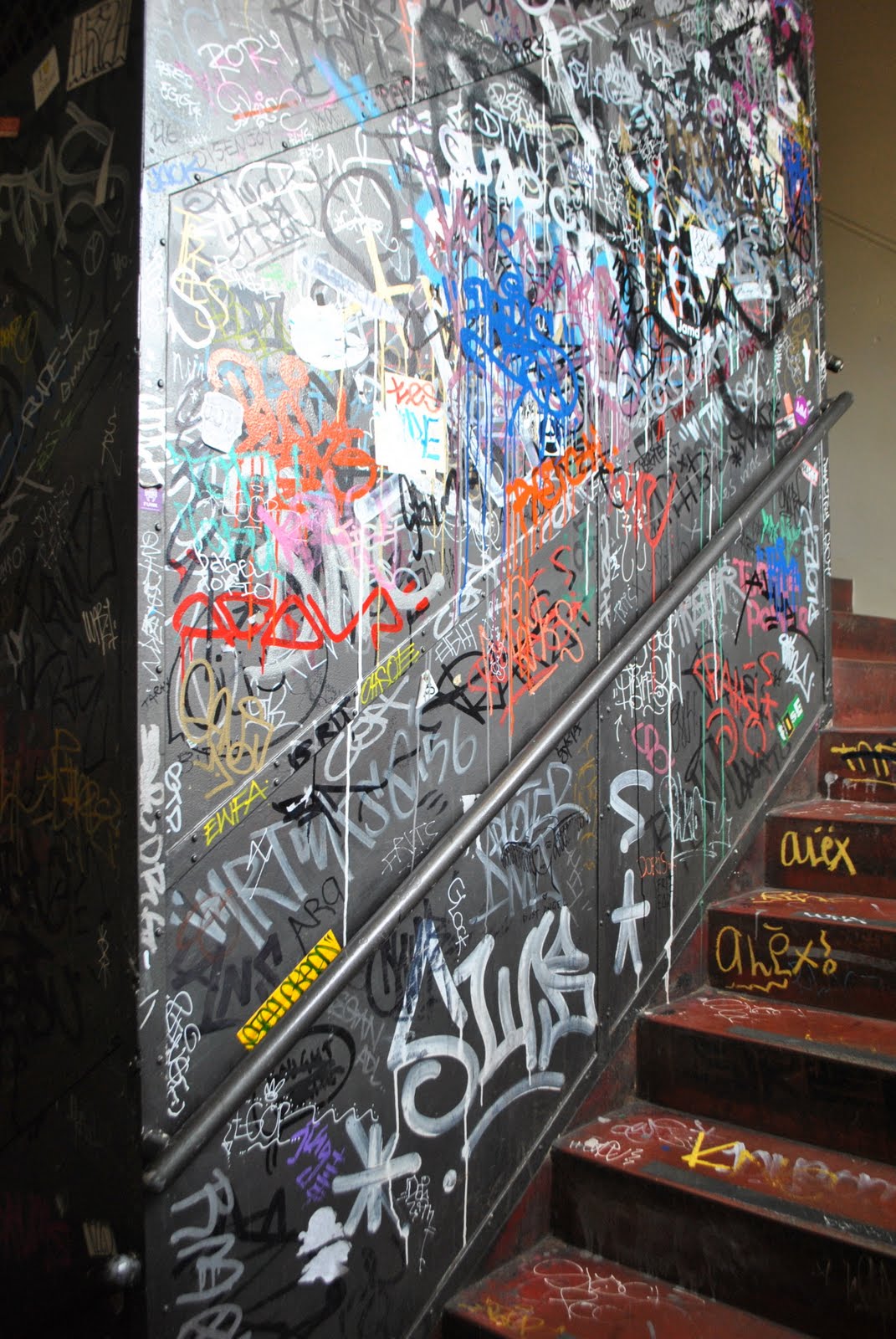 Curtin House is a six storey art nouveau building and home to various venues I’d like to visit one day: The Rooftop Bar, Toff in Town where lots of great bands play, Cookie for great food, a rare record shop and Metropolis, my dream for the day. Metropolis is an arty booklover’s paradise. Graphic design, photography, art, popular culture and just plain cool books. The kind of books that smell like real books. The kind of bookshop that makes you scorn the very notion of ipads. A real bookstore. And the stairway up to Metropolis…vertical laneway.