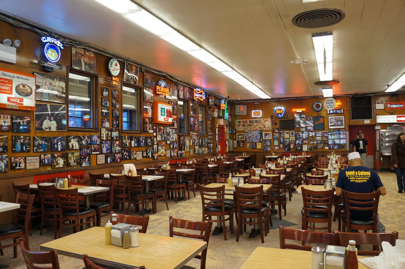 Popularity also allows for quirky rules around paying. When you enter Katz’s, a door attendant gives you a printed, numbered ticket. As you order food from the various stations – sandwiches, drinks, hotdogs etc. – your server writes a running total of the bill which you pay at the cashier’s counter on the way out. If the bill is all on one ticket, but each person in your party has been given a ticket, the empty tickets must be handed in also. There is a $50 lost ticket fee to prevent customers from conveniently losing tickets which may have had items on them and failing to pay.